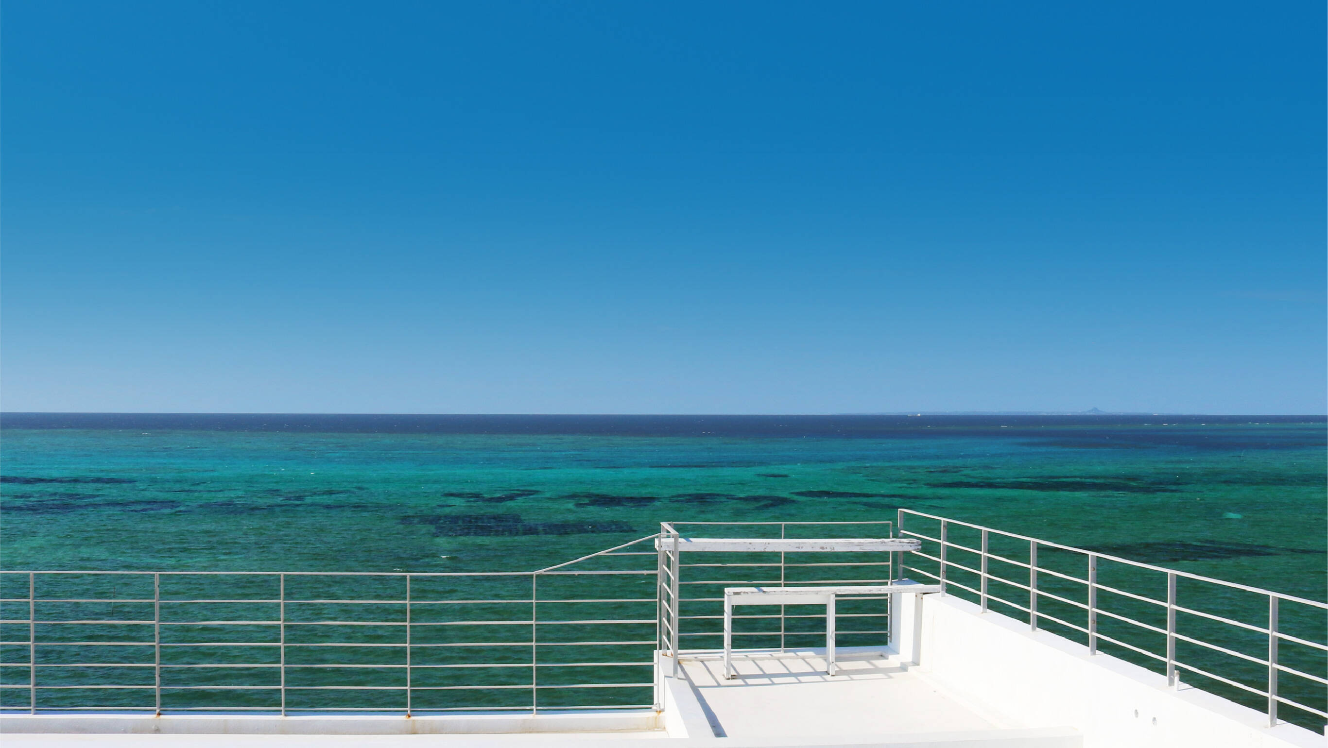 ビーチルームは沖縄本島の中部、恩納村・谷茶ビーチの目のまえに位置します。沖合に2人の神様が住むという伊江島タッチューを望み、春から秋には、水平線に沈む夕陽が訪れる人を静かに包み込みます