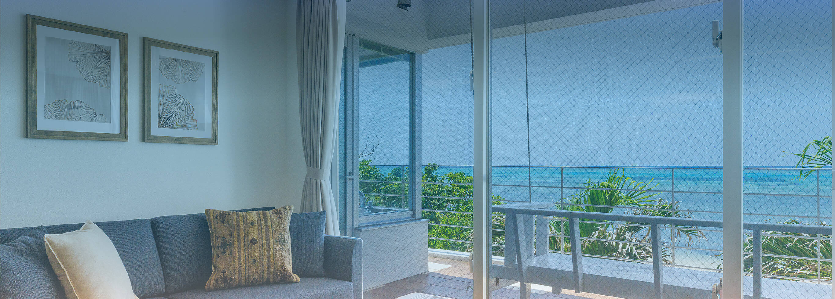 海に面して間口が広く、部屋から直接ビーチに出ることができる1Fのお部屋。