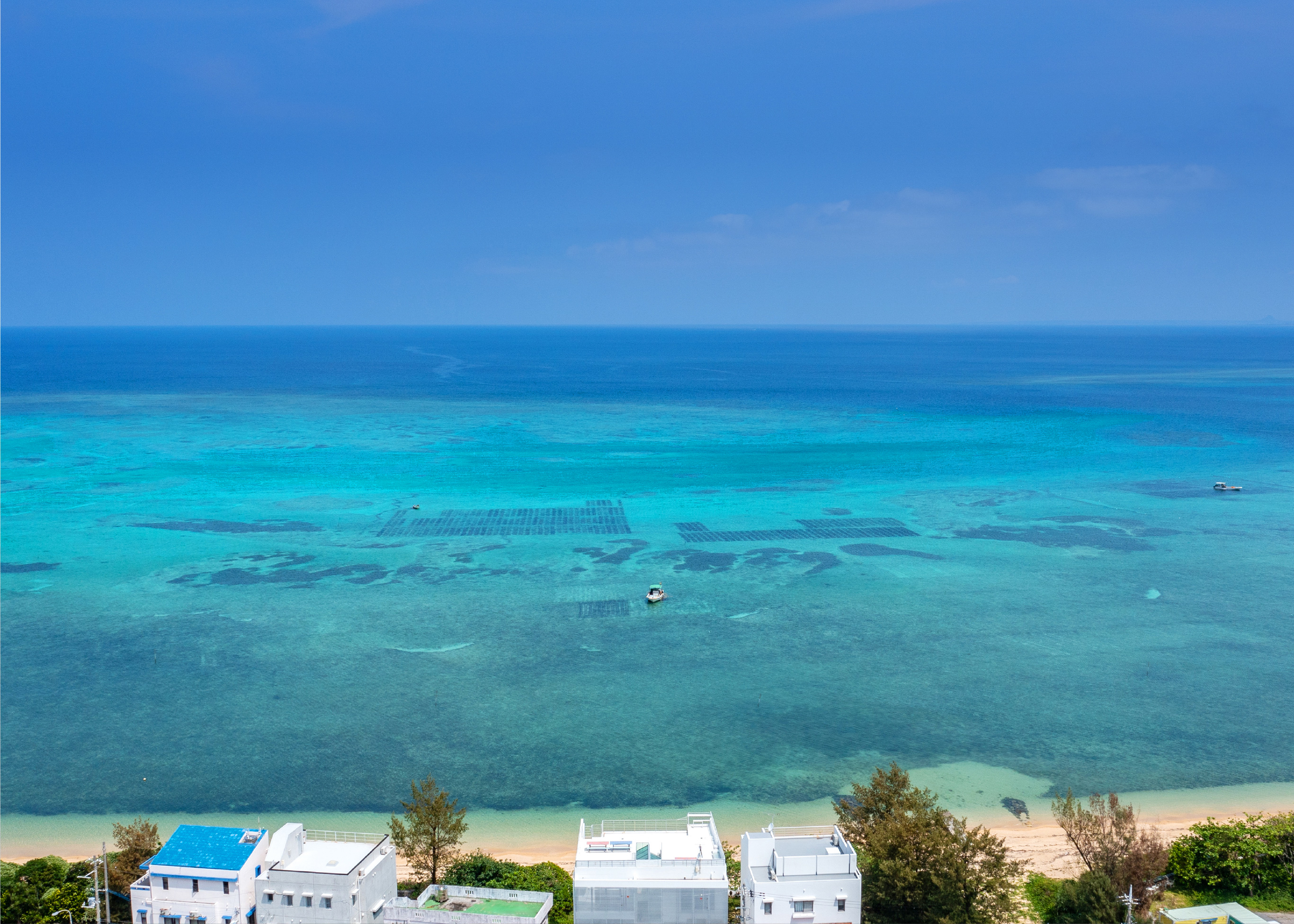 エメラルドグリーンの沖縄の海と、涼しげな風の音。
