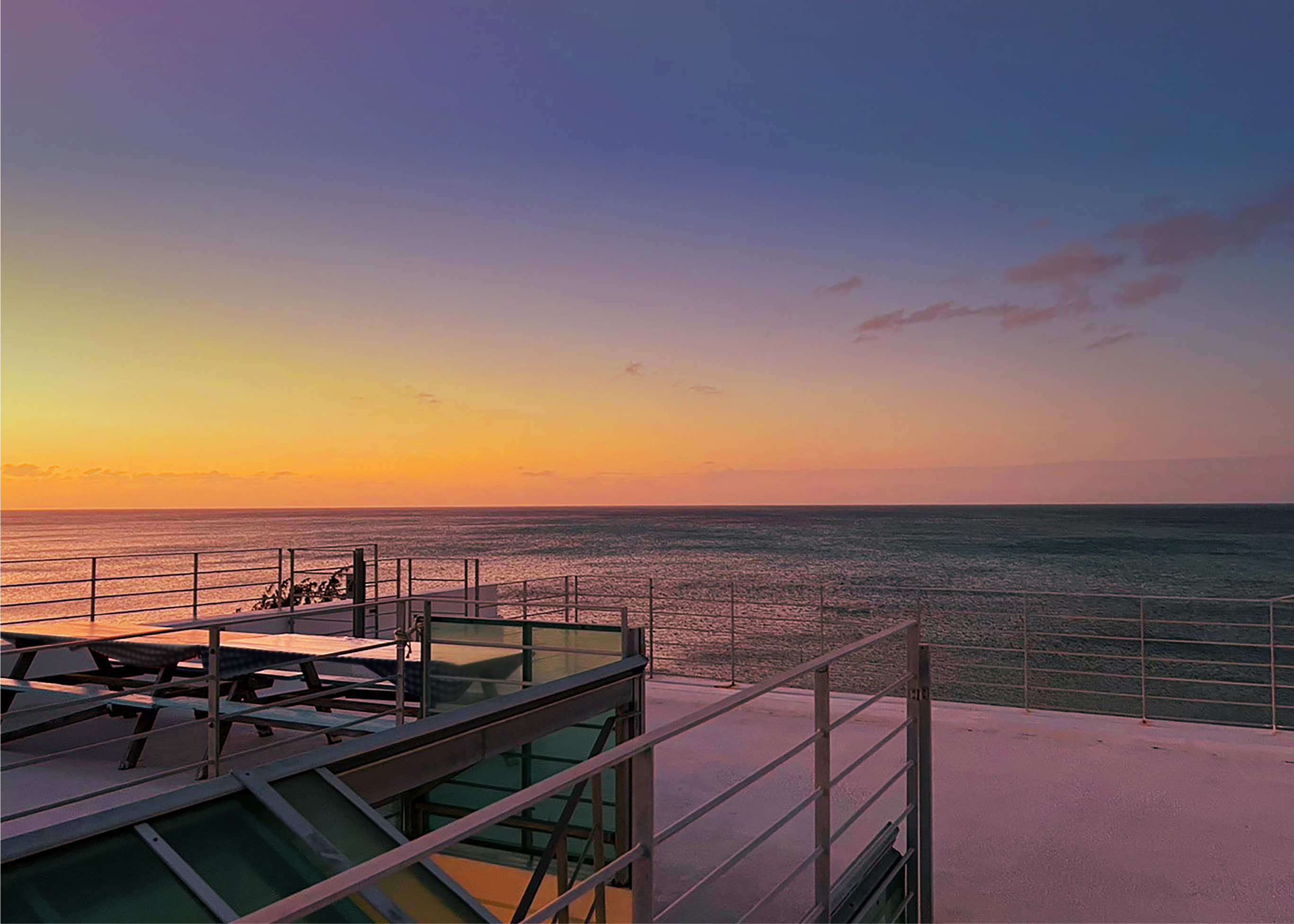 窓の向こうに広がる海と空の解放感に